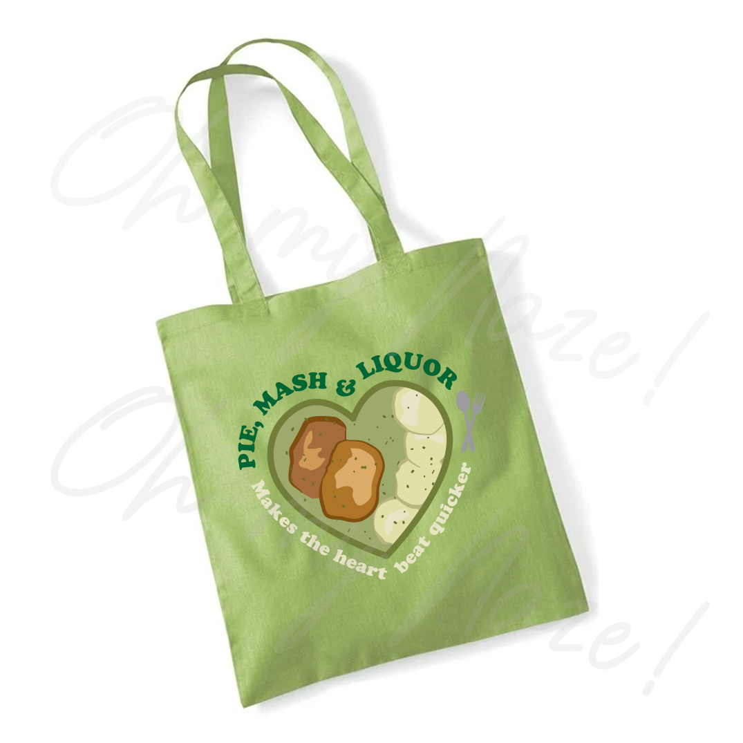 Pie Mash & Liquor (makes the heart beat quicker) tote bag
